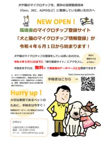 登録は「犬と猫のマイクロ チップ情報登録」のサイトへ ➡︎ https://pre.mc.env.go.jp