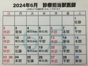 6月 鮭川分院の診療担当獣医師