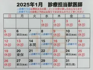 加えて、今年度は獣医師のスケジュール調整のため診察不可日があります。