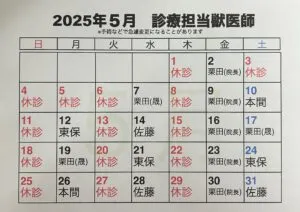 5月 鮭川分院の診療担当獣医師