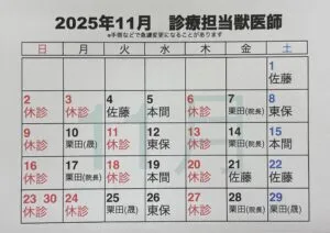 11月 鮭川分院の診療担当獣医師